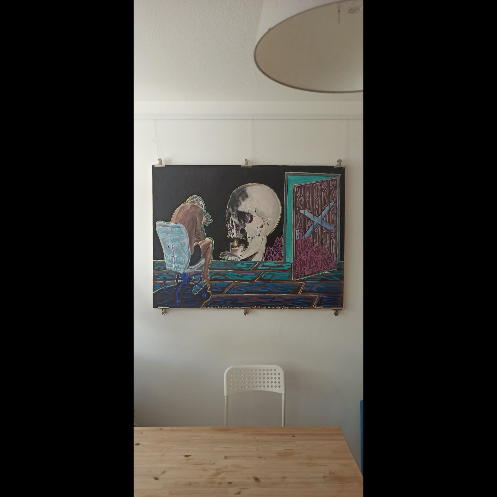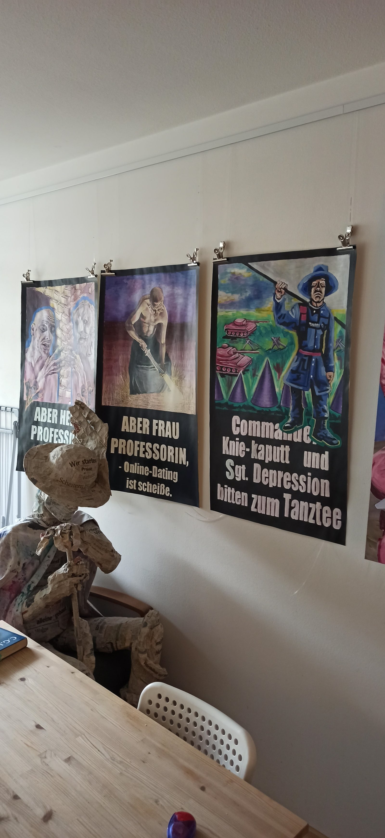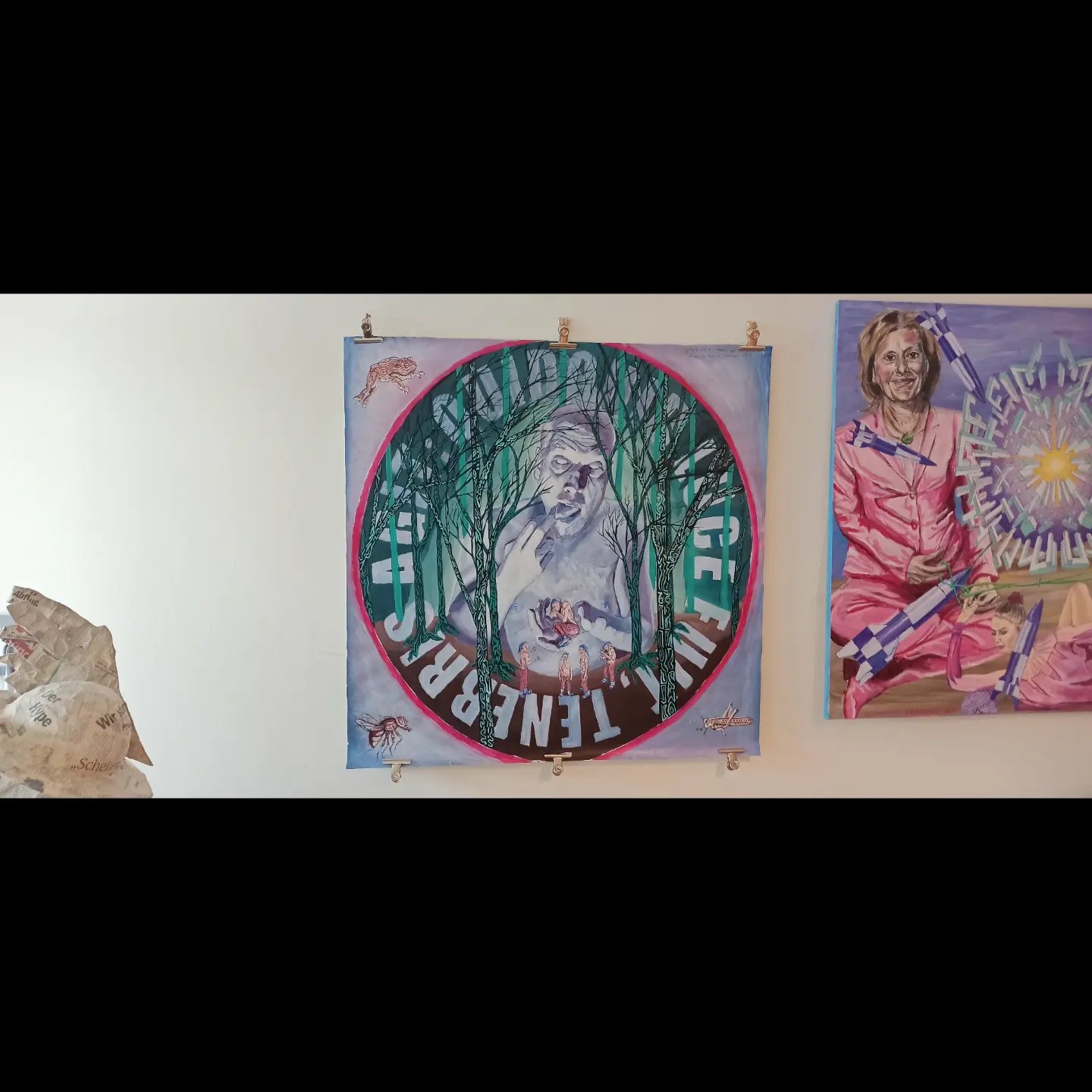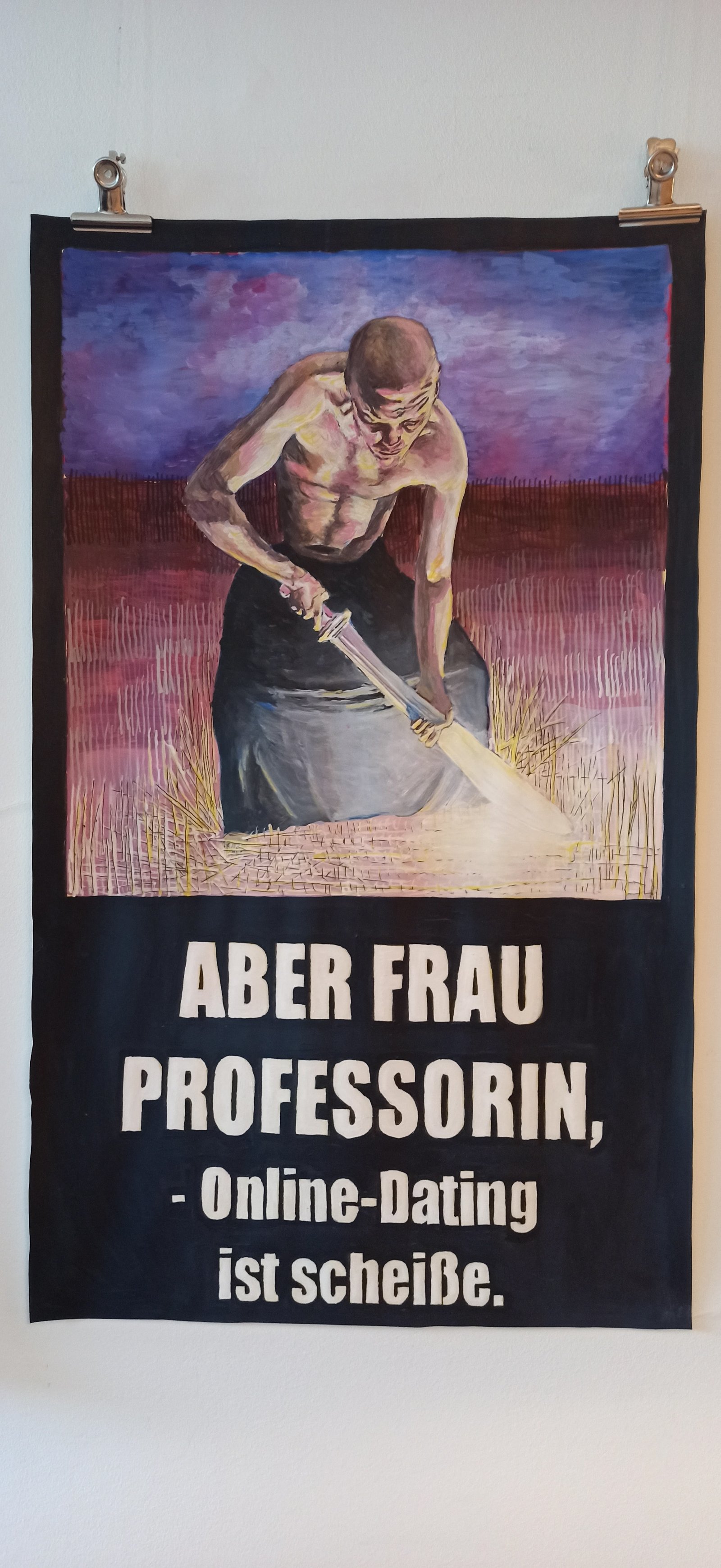 Plakat über die künstlerische Auseinandersetzung eines internen Streitgesprächs.