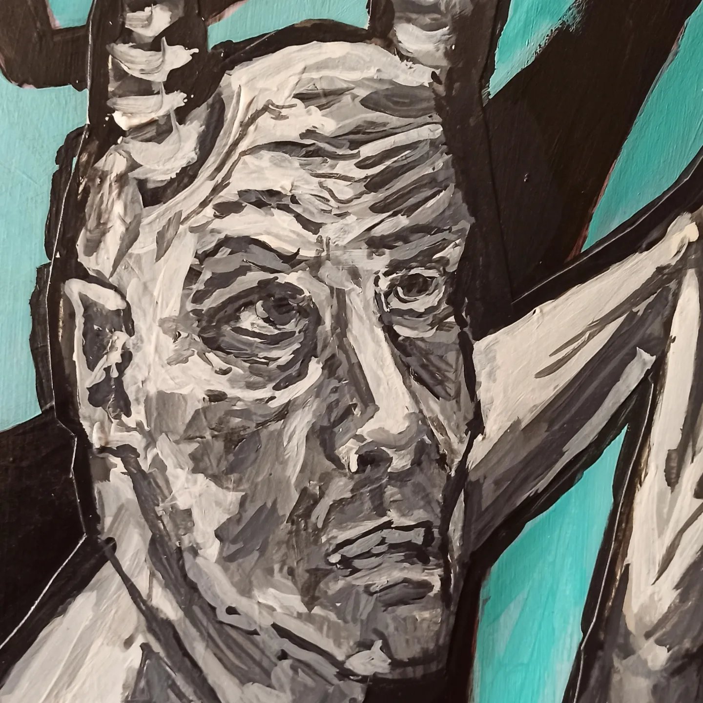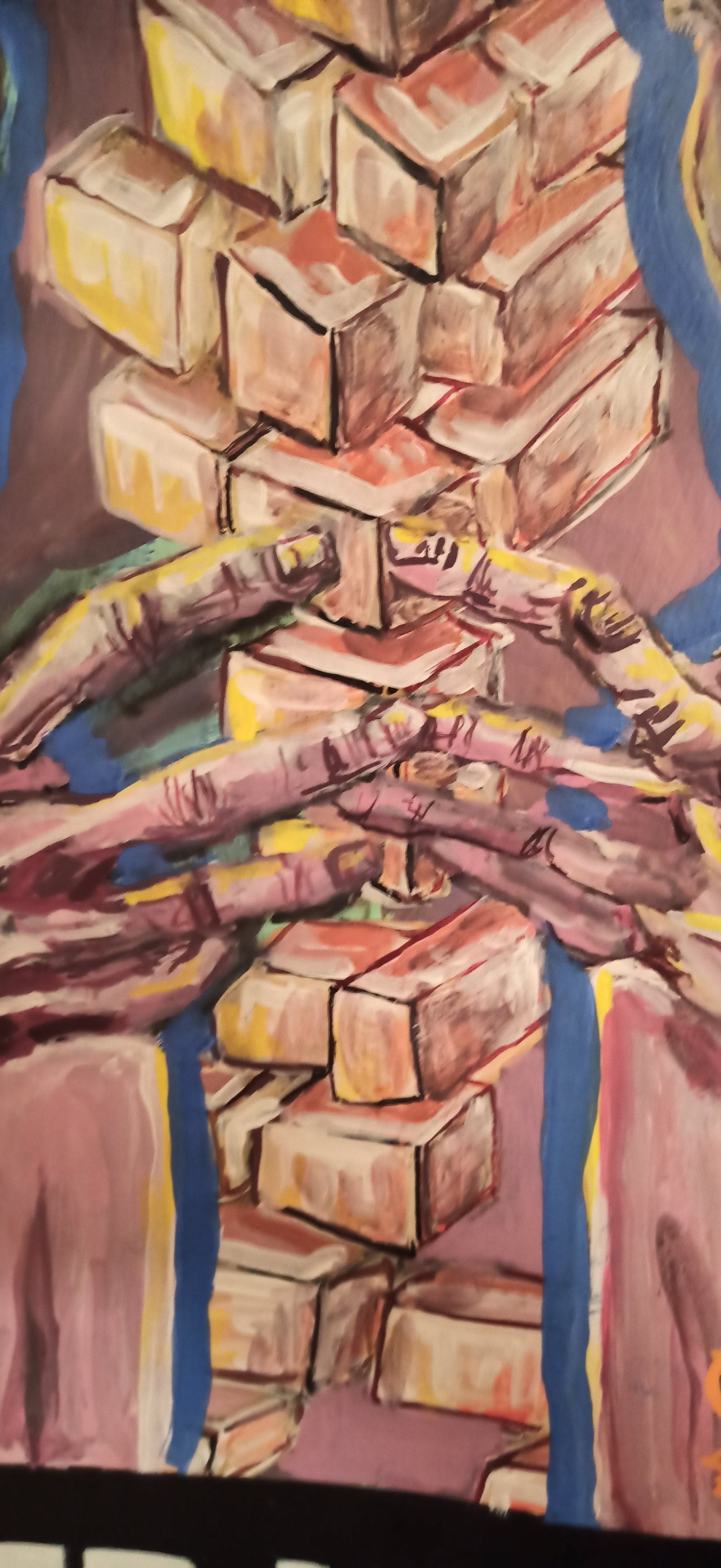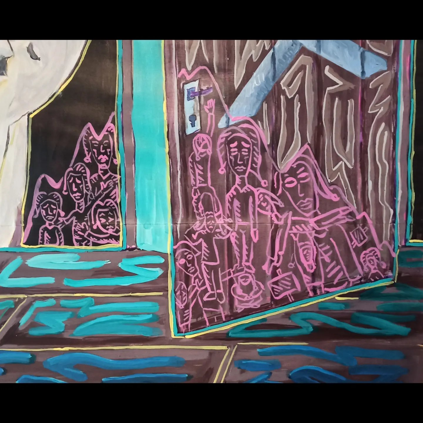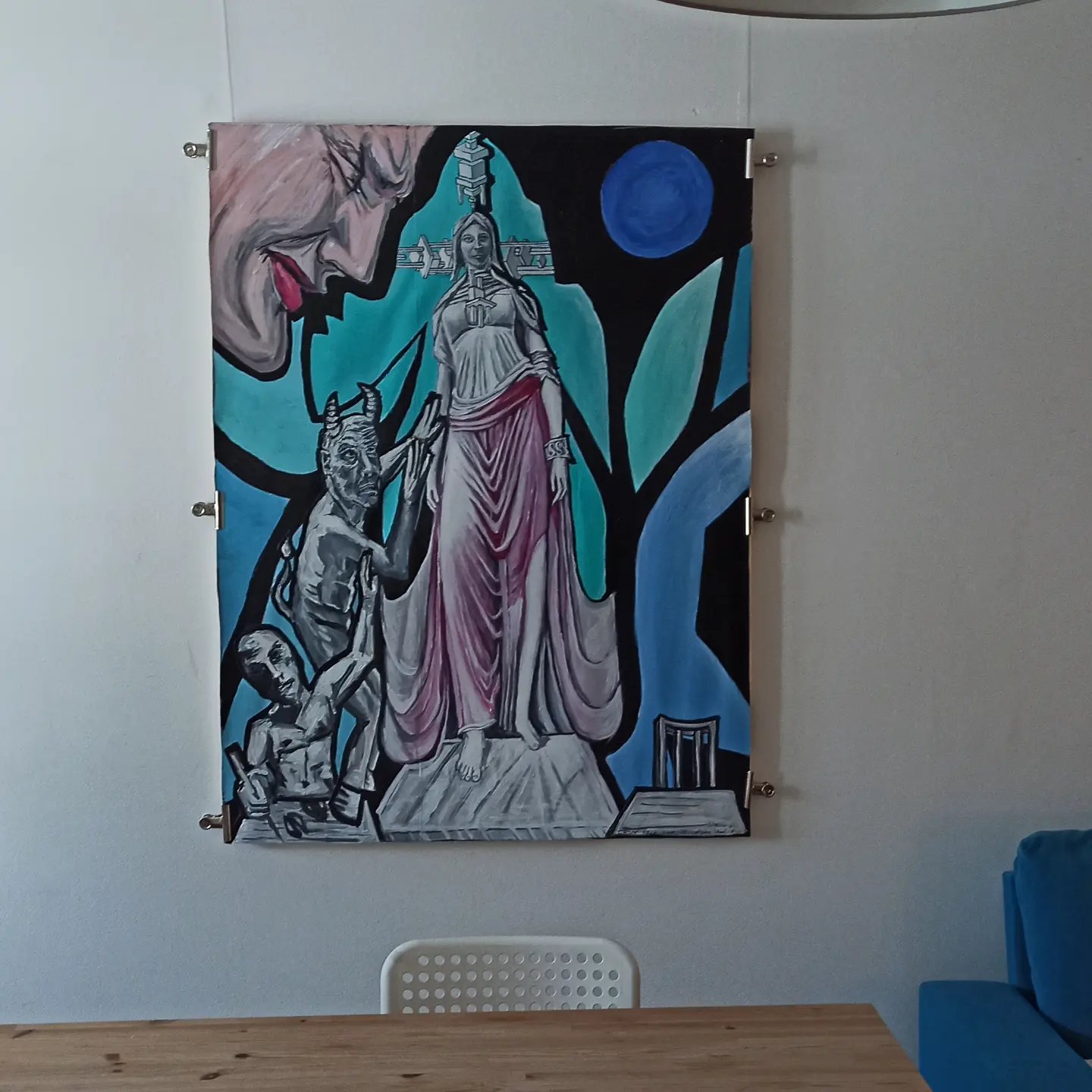 Plakat über die künstlerische Auseinandersetzung eines internen Streitgesprächs.